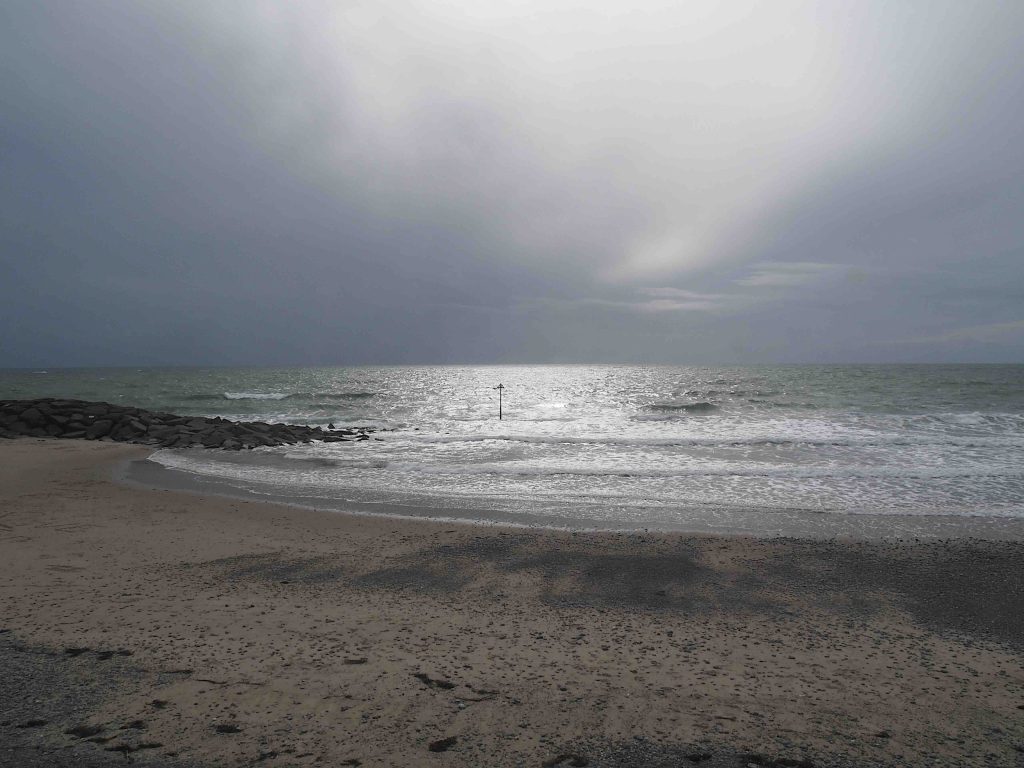 Hearing only the fall of the waves onto sands and the ensuing sound of beach pebbles being drawn along by the retreating water backwards into the timeless sea.